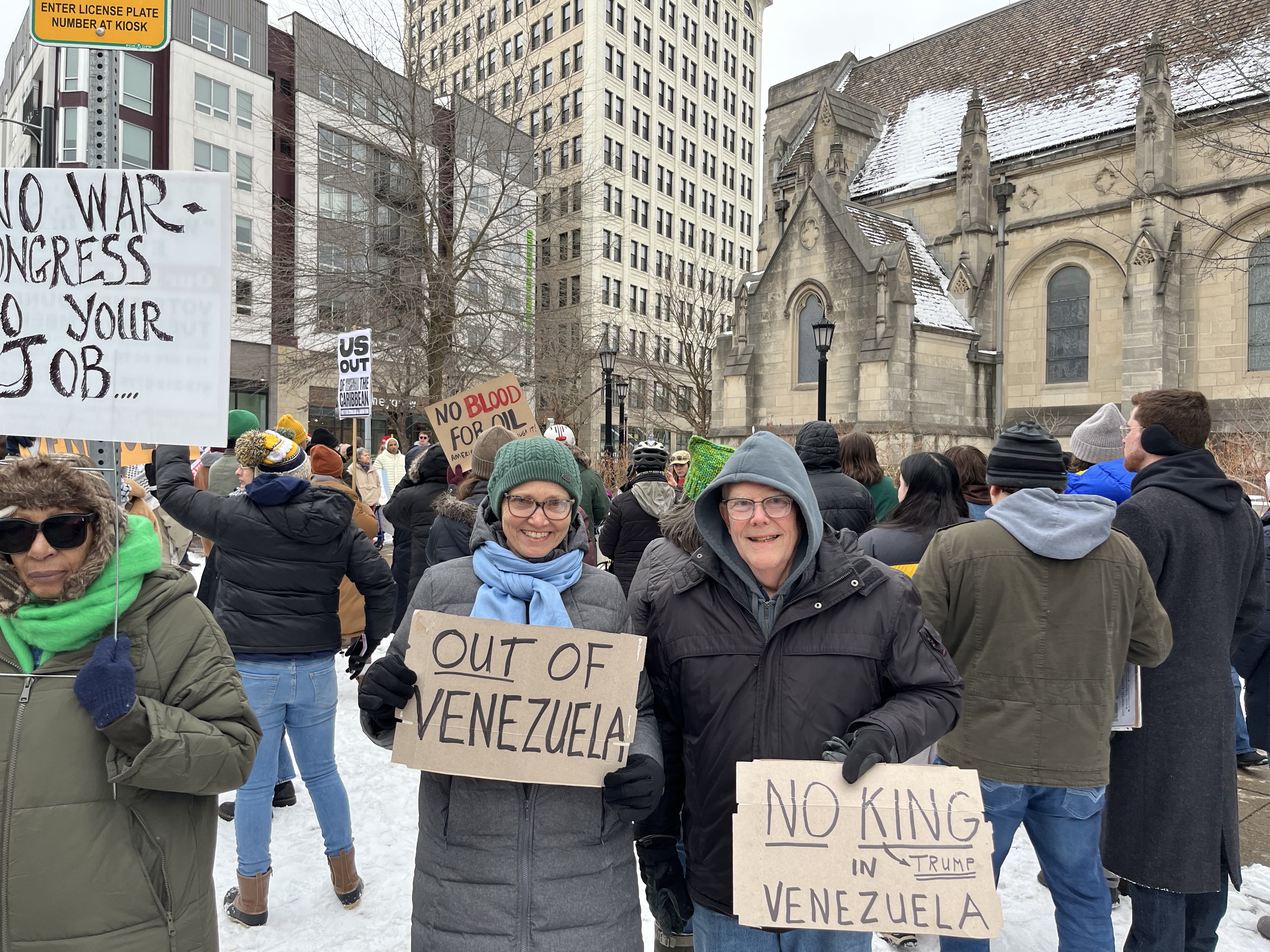 Two of our members, pictured below, demonstrated in Pittsburgh on the day the US illegally invaded Venezuela and kidnapped its president.